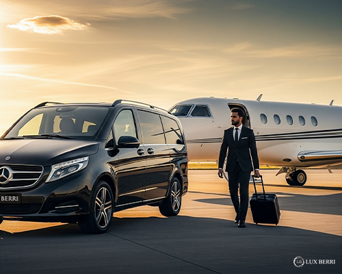 Luxury private jet chauffeur service at Paris Le Bourget Airport with VIP transfers from Signature Aviation, Jetex, ExecuJet, Dassault, ASTONSKY, and all private jet terminals. Travel seamlessly in Paris with LUX BERRI.